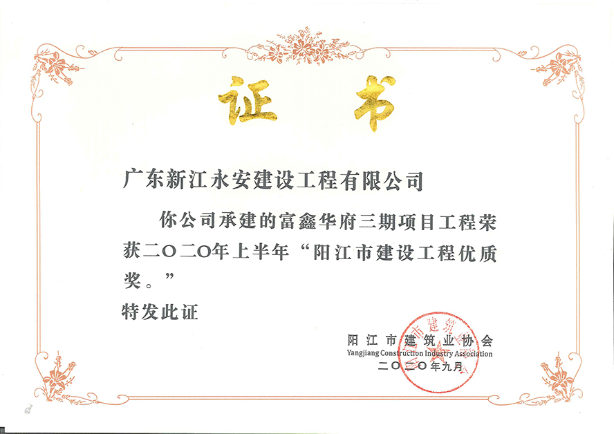 廣東新江永安建設集團有限公司是國.家一級資質企業,成立于二〇〇六年三月,注冊資本為壹億元人民幣,主要從事市政公用工程、建筑工程、公路工程、電力工程、城市及道路照明工程、交通安全設施工程等領域的專業施工。 經過十多年的發展,公司現已取得建設行政主管部門頒發的建筑工程施工總承包一級、市政公用工程施工總承包二級、電力工程施工總承包二級、機電工程施工總承包二級、建筑裝修裝飾工程專業承包一級、消防設施工程專業承包二級、防水防腐保溫工程專業承包二級、城市及道路照明工程專業承包二級、地基基礎工程專業承包二級、輸變電工程專業承包二級、環保工程專業承包二級、鋼結構工程專業承包二級、建筑機電安裝工程專業承包二級、古建筑工程專業承包二級、承裝類五級、施工勞務等16項資質的綜合性施工企業。 本公司總部立足陽江市,近年來不斷向外開拓業務,致力于向全.國各個省市發展。為推進粵港澳大灣區發展建設,在佛山設立大灣區辦公室,另在廣州、江門、東莞、惠州、中山、汕尾等地成立了分公司。公司的管理制度健全、技術力量雄厚、人員配套齊全、設備先進、員工隊伍穩定。 公司現有各類專業技術人員226人,其中高級職稱專業技術人員13人,各種持證項目經理46人,中級職稱專業技術人員48人,各類專業技術管理人員60人,各類持證上崗人員配備齊全。 公司堅持以“守合同、重信用”為根本,以“優質施工企業”和“建筑優質工程”為理念,以“高標準、高水平、高質量”為發展方向。我們將以高效的服務、專業的技術為客戶提供優質的服務,竭誠為社會打造建筑精品工程!